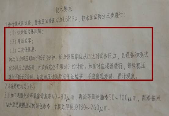 1、静压试验;3D-SY4000/4MPa电动试压泵(最大试验压力4MPa);