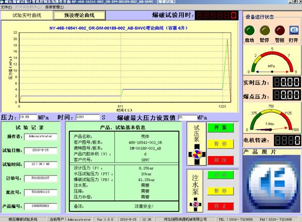 试压系统工作时软件与监控画面图片,仅供参考具体请以到货实物为准。