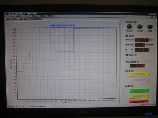 4、系统压力无级调节,靠计算机软件控制;试压泵本身的一些硬件功能包括:“开始”、“暂停”、“卸压”、“手动调压”等;